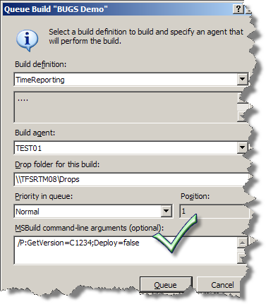 This post is all about how you can parameterize your builds to work in different scenarios. Before you read this, please take a moment to read Mikaels introductory blog post and take a look at my webcast on Channel9 [~18m], if you haven’t already – it will eaze your understanding of this article.