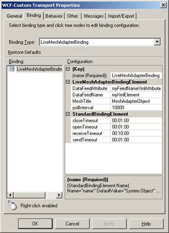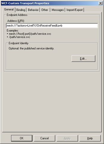It also has security set to none (not shown in screenshot) as well as on the Messages tab having the Inbound BizTalk message body – Path, set to an XPath and String Node Encoding. the xpath in this case is /*[local-name()=’AddResponse’ and namespace-uri()=’http://Microsoft.ServiceModel.Samples’]/*[local-name()=’AddResult’ and namespace-uri()=’http://Microsoft.ServiceModel.Samples’%5D, which will forward the string value inside the AddResult node for the pipeline.