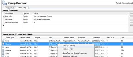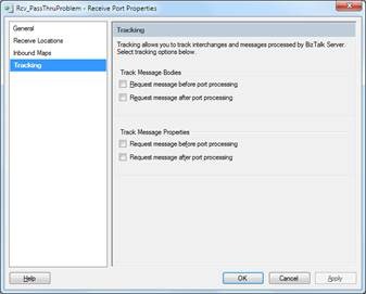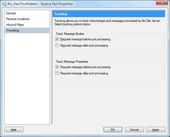 However if I return to my port and check some of those check boxes for tracking, in this case “Request message before port processing”