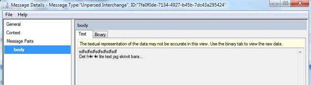 Now if I send in another message and try to look at its Message Details I get a dialogue containing the details I am after, including the content of the message