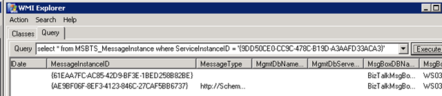 This week a co-worker raised an issue with a WMI query where he did a simple query for an orchestrations messages, and for some reason not all of them were returned. This behavior exists on both 2006 R2 and 2009, and thus most likely on 2006 as well. The query was simple: