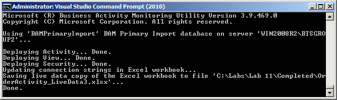 Using bm.exe to deploy my BAM activity and view to my named instance.