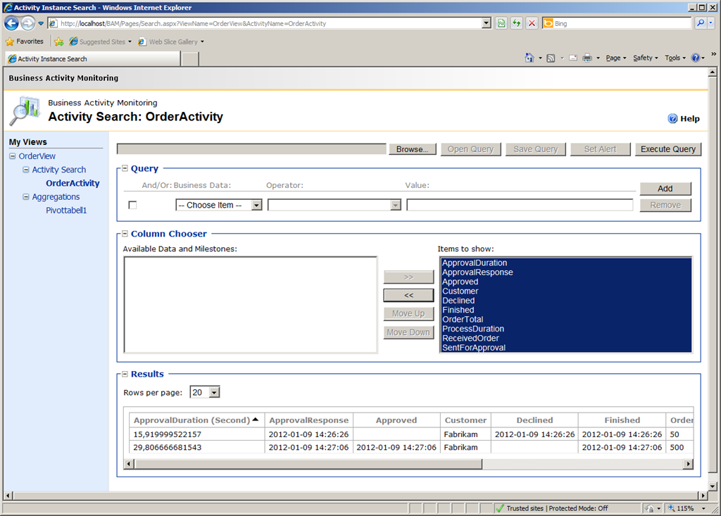 Viewing data in the BAM portal